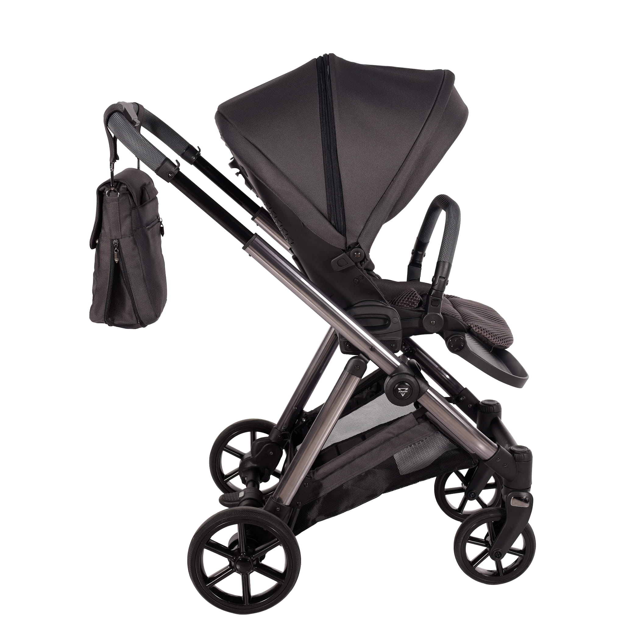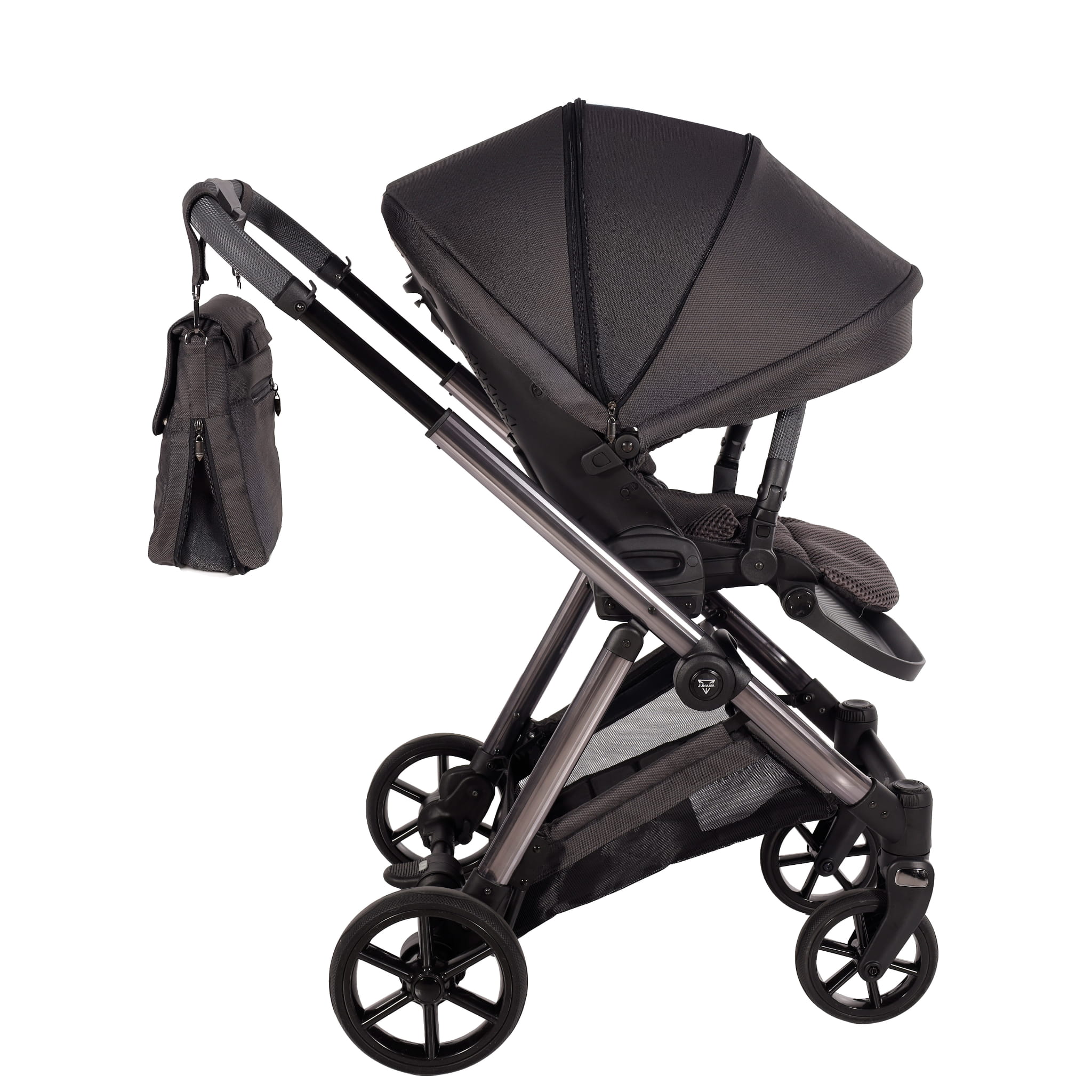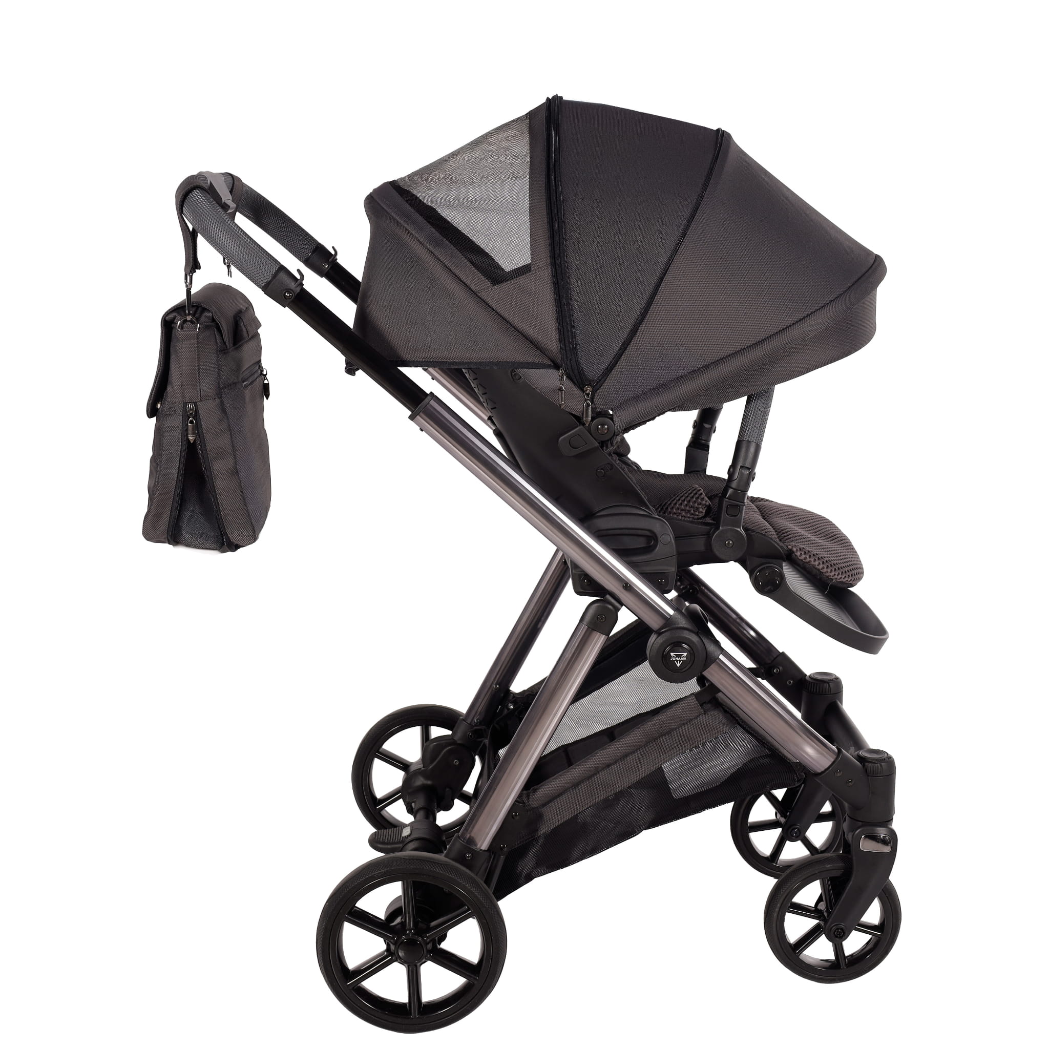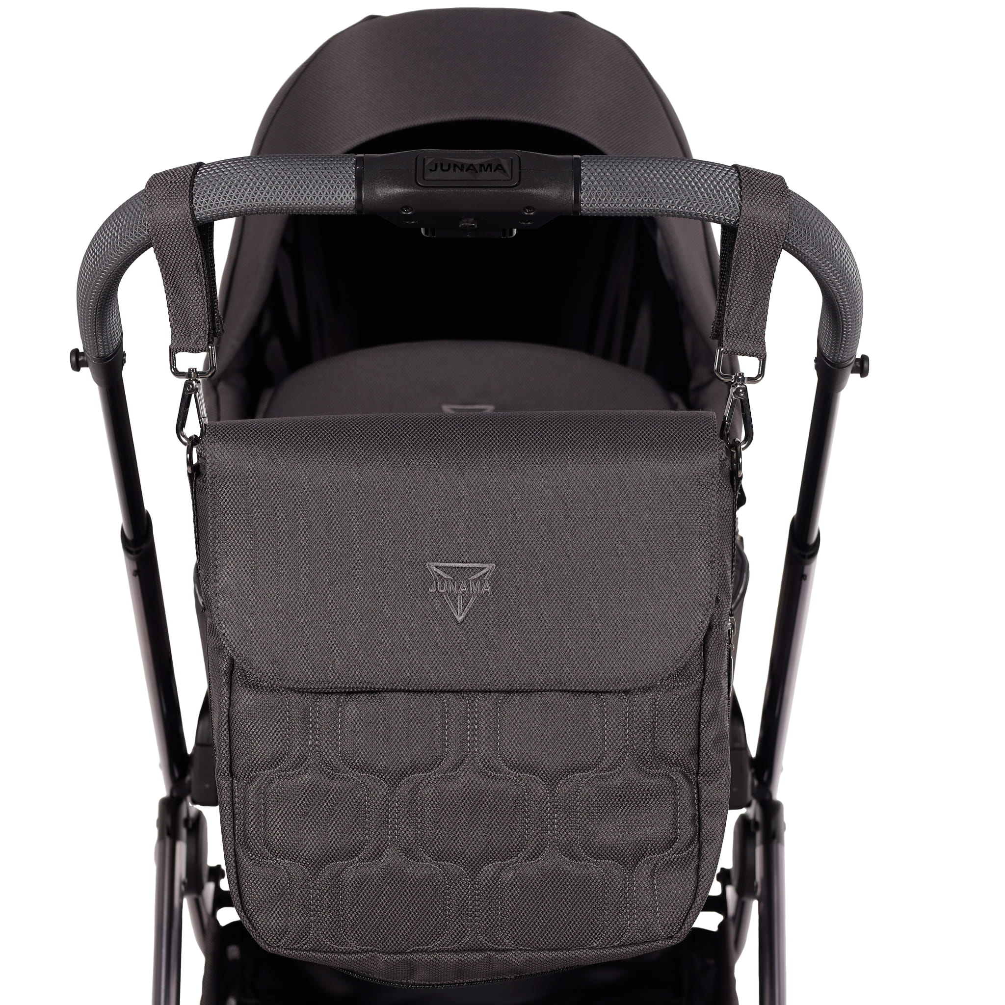 Junama Ellegante w grafitowym kolorze. Lekki wózek dla wymagających rodziców łączący komfort i piękny styl.