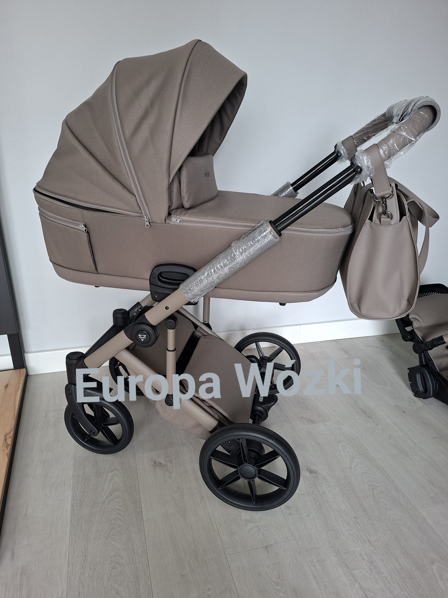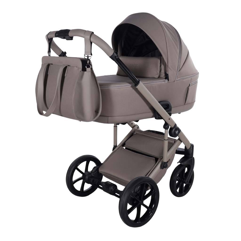 Eleganckie akcesoria w zestawie W zestawie znajduje się stylowa torba pielęgnacyjna dopasowana kolorystycznie do wózka, a także praktyczne akcesoria, które sprawdzą się podczas codziennych spacerów: